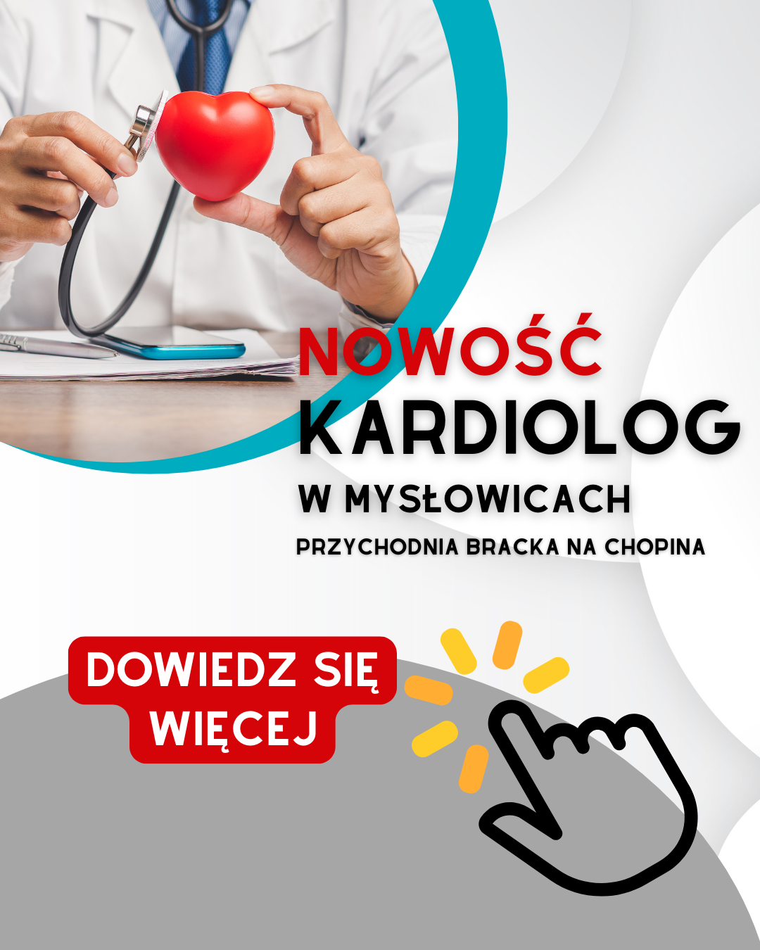 Usługa Światło spolaryzowane 15 min (Zabiegi w warunkach domowych) Test Combo (SARS-CoV-2/grypyA+B/RSV) (Poradnia Podstawowej Opieki Zdrowotnej dla dorosłych) Mykogram mikrobiologiczny (Mikrobiologia) Prevenar 20 0,5 ml - przeciw pneumokokom (Szczepienia) Kwalifikacja do zabiegów magistra rehabilitacji (Konsultacje fizjoterapeutyczne) Pakiet kardiologiczny: badanie EKG, morfologia, elektrolity, kreatynina, glukoza, TSH, lipidogram (cholesterol całkowity, HDL, LDL, trójglicerydy) (Poradnia kardiologiczna) Pakiet badań: EKG, UKG, Holter EKG, Holter RR (Poradnia kardiologiczna) Pakiet badań: EKG, UKG, Holter EKG (Poradnia kardiologiczna) Konsultacja kardiologa wraz z EKG – kolejna wizyta (Poradnia kardiologiczna) Konsultacja kardiologa wraz z EKG, UKG (echo serca) – pierwsza wizyta (Poradnia kardiologiczna) Poradnia Podstawowej Opieki Zdrowotnej dla dorosłych Konsultacja lekarza POZ (Poradnia Podstawowej Opieki Zdrowotnej dla dorosłych) Konsultacja pediatry (Poradnia Podstawowej Opieki Zdrowotnej dla dzieci) Konsultacja neurologa (Poradnia neurologiczna) Badanie przewodzenia we włóknach ruchowych jednego nerwu z falą F (EMG) Badanie EKG (EKG) Badanie spirometryczne (Spirometria) Badanie audiometryczne (Audiometria) Konsultacja okulisty (m.in. dobór szkieł, soczewek, badanie dna oka) (Poradnia okulistyczna) Konsultacja dermatologa (Poradnia dermatologiczna) Konsultacja kardiologa wraz z EKG - pierwsza wizyta (Poradnia kardiologiczna) Konsultacja psychiatry (Poradnia zdrowia psychicznego) Poradnia chirurgii ogólnej (Poradnie specjalistyczne) Konsultacja chirurga ogólnego (Poradnia chirurgii ogólnej) Konsultacja chirurga ortopedy (Poradnia chirurgii urazowo-ortopedycznej) Konsultacja otolaryngologa (Poradnia otolaryngologiczna) Konsultacja ginekologa (Poradnia położniczo - ginekologiczna) Konsultacja urologa (Poradnia urologiczna) Badanie profilaktyczne (wstępne, okresowe, kontrolne lub końcowe) lekarza medycyny pracy, wydanie orzeczenia (Medycyna Pracy) Konsultacja lekarza rehabilitacji medycznej (Poradnia rehabilitacyjna) Konsultacja magistra rehabilitacji (Konsultacje fizjoterapeutyczne) Diatermia krótkofalowa, mikrofalowa (Fizykoterapia) Ćwiczenia czynne, czynne w odciążeniu i czynne w odciążeniu z oporem (Kinezyterapia) Drenaż limfatyczny kończyn dolnych (Masaż) Krioterapia ogólnoustrojowa (Kriokomora) Porada mgr fizjoterapii wraz z badaniem (Zabiegi w warunkach domowych) Zdjęcie rtg całego kręgosłupa AP młodzieży – wada postawy (RTG) USG (Diagnostyka) USG jamy brzusznej dzieci (USG dla dzieci) USG Doppler tętnic i żył obu kończyn dolnych (USG) Albumina (Badania podstawowe i biochemiczne) Clostridioides difficile, antygen GDH i toksyna A/B w kale (Badania kału) Anty-CCP (Markery odczynów zapalnych i reumatologicznych) Grupa krwi (Serologia) Diagnostyka chorób tarczycy (Badania laboratoryjne) Anty-TG (Diagnostyka chorób tarczycy) 17-hydroksyprogesteron (Hormony płciowe) ACTH (Inne hormony i metabolity) Borelioza w klasie IgG (Diagnostyka infekcji) IgA (Immunoglobuliny) AFP (Markery nowotworowe) Erytropoetyna (Diagnostyka anemii) ANA 1 - PPJ met. IIF (typ świecenia, miano) (Autoimmunologia) Amfetamina w moczu, jakościowo (Inne badania) Pielęgniarska domowa opieka długoterminowa (Opieka Domowa) Konsultacje fizjoterapeutyczne (Rehabilitacja) Act-HIB - przeciw haemophilus typ b (Szczepienia) Opłata za jedną stronę wyciągu lub odpisu dokumentacji medycznej (Udostępnienie dokumentacji medycznej) Konsultacja endokrynologa (Poradnia endokrynologiczna) Albumina w moczu (Badania z moczu) Opieka koordynowana - program diabetologiczny (Programy zdrowotne) Kąpiel wirowa kręgosłupa (Hydroterapia) Antybiogram (Mikrobiologia) Konsultacja lekarza reumatologa dla dzieci (Poradnia reumatologiczna) Poradnia Podstawowej Opieki Zdrowotnej dla dzieci EMG (Diagnostyka) Badanie w kierunku polineuropatii (czterokończynowe) (EMG) Badanie OCT – optyczna koherentna tomografia dna oka (Poradnia okulistyczna) Badanie dermatoskopem (Poradnia dermatologiczna) UKG – echo serca (bez konsultacji) (Poradnia kardiologiczna) Konsultacja psychologa (Poradnia zdrowia psychicznego) Konsultacja reumatologa (Poradnia reumatologiczna) Badanie histopatolgiczne (Poradnia chirurgii ogólnej) Poradnia chirurgii urazowo-ortopedycznej (Poradnie specjalistyczne) Konsultacja chirurga ortopedy wraz z USG stawu (Poradnia chirurgii urazowo-ortopedycznej) Audiometria impedancyjna (tympanometria) wraz z badaniem odruchów z mięśnia strzemiączkowego oraz testem drożności trąbek słuchowych (Poradnia otolaryngologiczna) Konsultacja ginekologa wraz z USG dopochwowym (Poradnia położniczo - ginekologiczna) Konsultacja neurologa (Medycyna Pracy) Elektrostymulacja (Fizykoterapia) Masaż (Rehabilitacja) Drenaż limfatyczny kończyn górnych (Masaż) Kąpiel czterokomorowa (Hydroterapia) Krioterapia ogólnoustrojowa – pakiet 5 zabiegów (Kriokomora) Zdjęcie rtg celowane - ząb obrotnika (RTG) USG Doppler tętnic obu kończyn dolnych (USG) ALT (Badania podstawowe i biochemiczne) Amylaza w moczu (Badania z moczu) Kał - badanie ogólne (Badania kału) ASO, ilościowo (Markery odczynów zapalnych i reumatologicznych) Anty-TPO (Diagnostyka chorób tarczycy) AMH (Hormony płciowe) Adrenalina (Inne hormony i metabolity) Borelioza w klasie IgG metodą Immunoblot (Diagnostyka infekcji) IgE całkowite (Immunoglobuliny) Biocenoza pochwy (Mikrobiologia) Beta-2-mikroglobulina (Markery nowotworowe) Diagnostyka anemii (Badania laboratoryjne) Ferrytyna (Diagnostyka anemii) ANA 2 - PPJ met. Immunoblot (16 antygenów) (Autoimmunologia) Barbiturany w moczu - jakościowo (Inne badania) Pakiet rehabilitacji domowej - 1 godzina (Zabiegi w warunkach domowych) Usługi pielęgniarskie/pielęgnacyjno-opiekuńcze (Opieka Domowa) Adacel - przeciw tężcowi, krztuścowi, błonicy (Szczepienia) Opłata za wydanie jednej strony kopii albo wydruku dokumentacji medycznej (Udostępnienie dokumentacji medycz